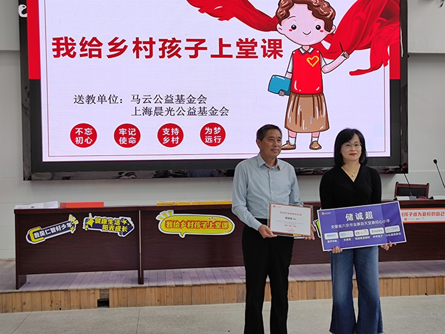 9月14日,上海晨光公益基金會一行前往安徽省金寨縣天堂寨同心小學向入選馬云鄉(xiāng)村校長計劃的儲誠超校長送上一份大驚喜,同心小學是一所半寄宿制學校,學校身處金寨山中,儲校長多年來奉獻鄉(xiāng)村教育,積極為孩子爭取優(yōu)質(zhì)的教育資源,讓孩子得以看見大山以外的世界,其優(yōu)秀的教學理念與做法讓他獲得了2021年度馬云鄉(xiāng)村校長計劃。