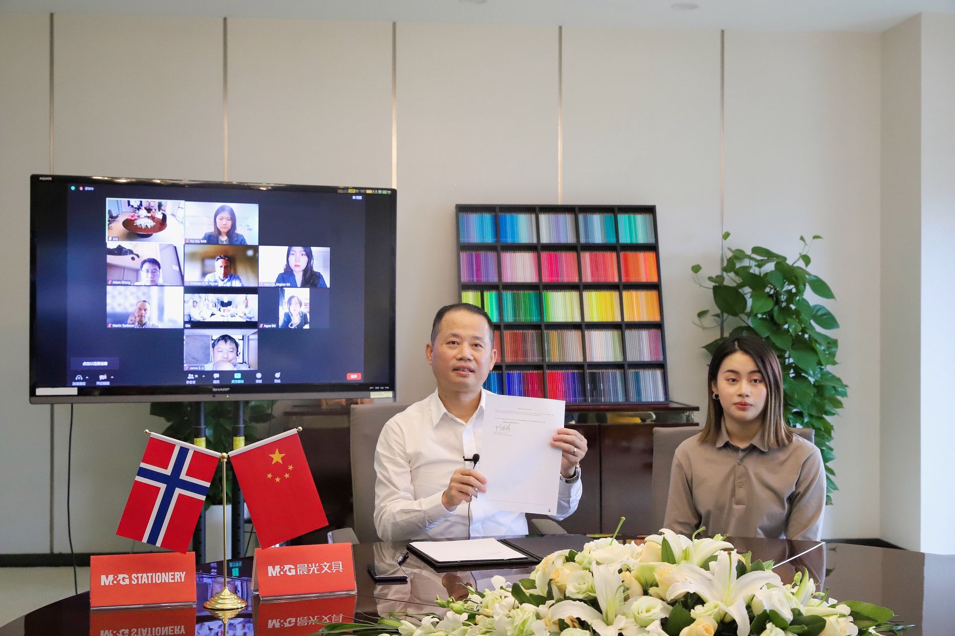 近日,晨光文具與Beckmann成功舉行云簽約儀式,總裁陳湖雄先生與Herkules基金合伙人Fredrik Kongsli先生、Beckmann家族代表Jan Olav Beckmann先生、Beckmann公司CEO Ole Falk Hansen先生及管理層、及本次交易各顧問方代表,以視頻方式出席本次儀式。