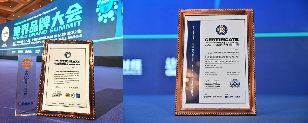 晨光榮獲2021“中國(guó)品牌年度大獎(jiǎng)文具N0.1”和“中國(guó)500最具價(jià)值品牌”稱號(hào)