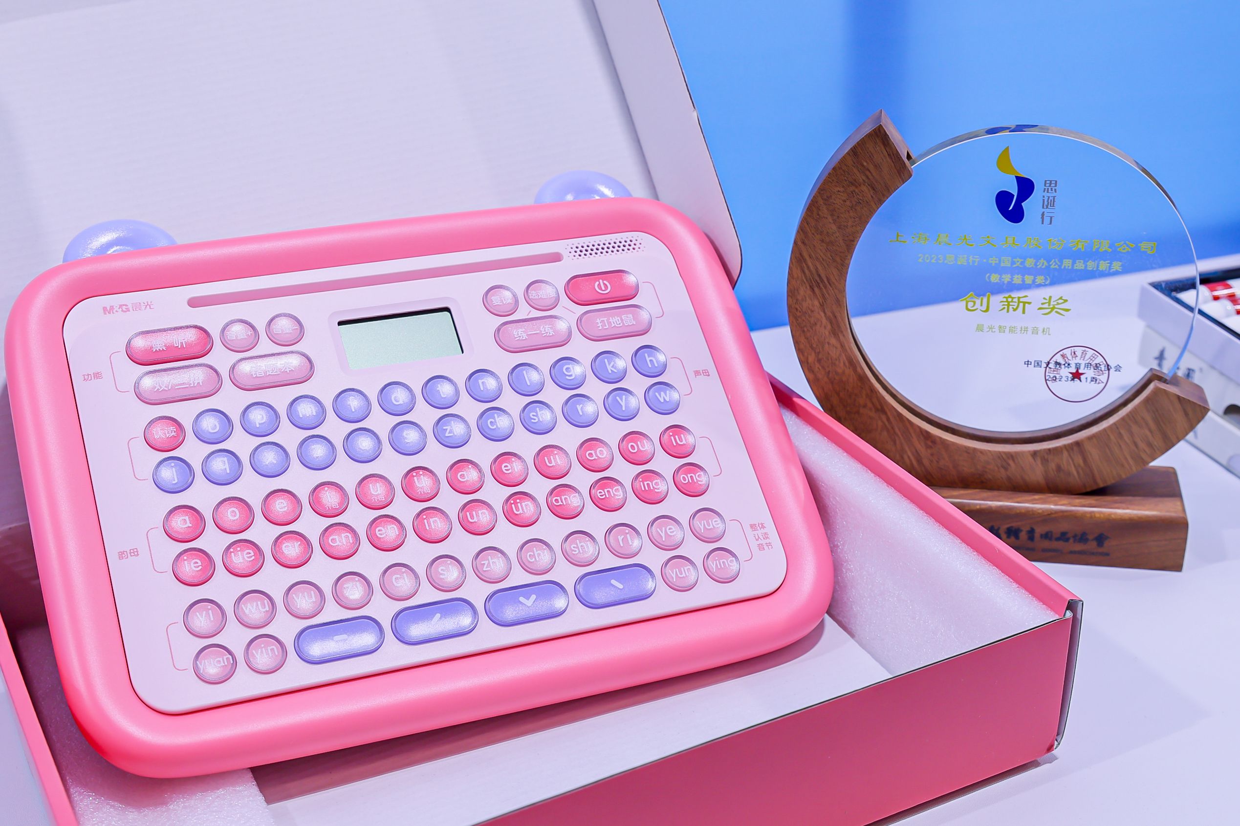 隨著科技的發(fā)展,新型智能文具正受到越來越多學(xué)生和家長的歡迎。本次展會,晨光帶來了專為幼小銜接階段兒童設(shè)計(jì)的智能拼音機(jī),通過聲音、圖像等多媒體及互動教學(xué)形式,幫助孩子系統(tǒng)學(xué)習(xí)拼音知識的同時(shí),讓學(xué)習(xí)過程更加生動有趣,進(jìn)一步激發(fā)學(xué)習(xí)熱情,同時(shí)憑借創(chuàng)新技術(shù)和設(shè)計(jì)獲“2023 思誕行創(chuàng)新獎(jiǎng)”。