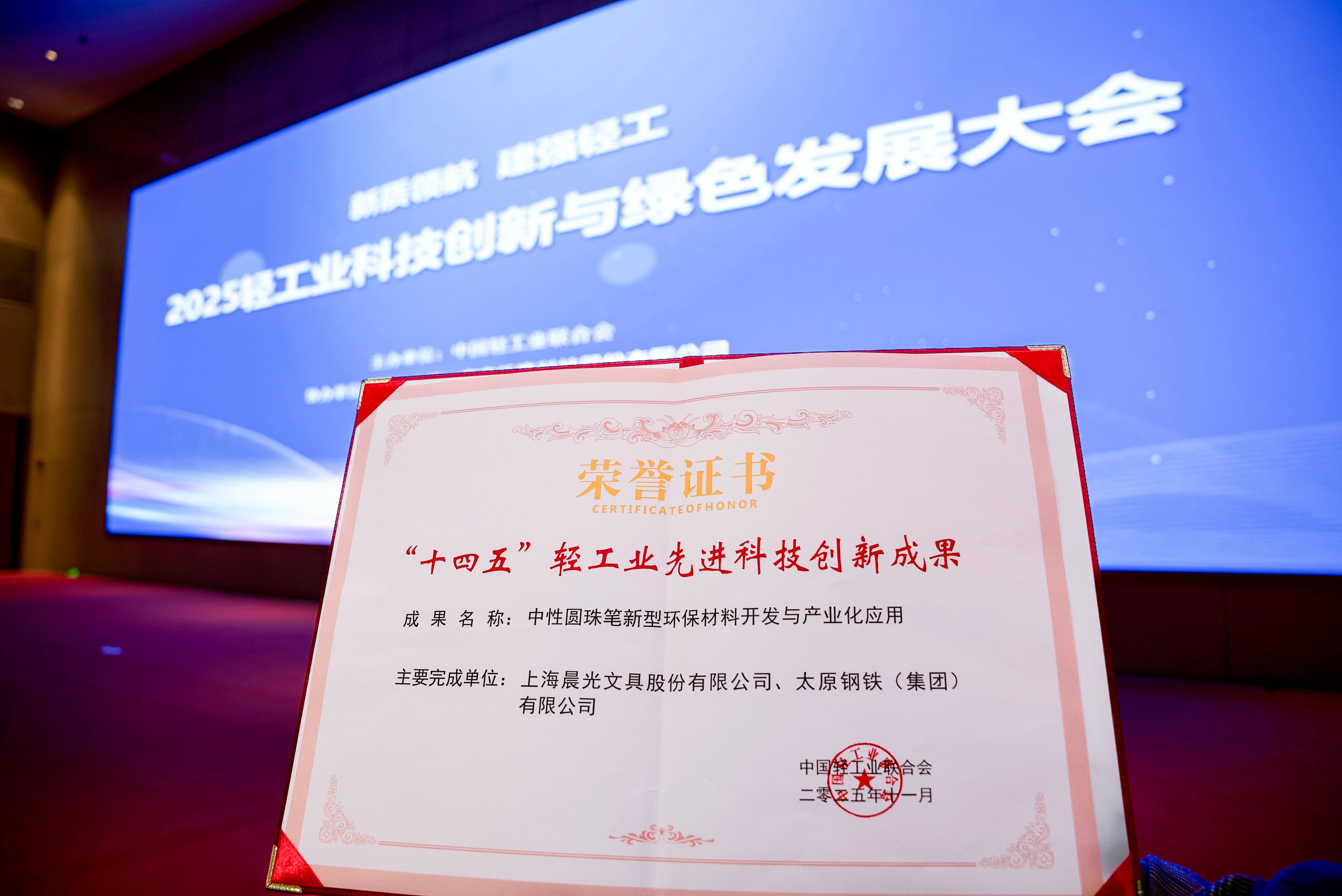 發(fā)布日期:2025-11-122025既是“十四五”規(guī)劃的收官之年,也是“十五五”規(guī)劃開(kāi)局的重要節(jié)點(diǎn)。11月11日,由中國(guó)輕工業(yè)聯(lián)合會(huì)主辦的2025年輕工業(yè)科技創(chuàng)新與綠色發(fā)展大會(huì)在南京隆重召開(kāi),由晨光文具主負(fù)責(zé)、太原鋼鐵參與的《中性圓珠筆新型環(huán)保材料開(kāi)發(fā)與產(chǎn)業(yè)化應(yīng)用》項(xiàng)目,以及晨光文具參與的《高性能環(huán)保墨水關(guān)鍵技術(shù)與產(chǎn)業(yè)化》、《高比表面及皮芯結(jié)構(gòu)纖維材料與環(huán)保制品的研發(fā)與產(chǎn)業(yè)化》項(xiàng)目成功獲選“十四五”輕工領(lǐng)域科技創(chuàng)新成果。