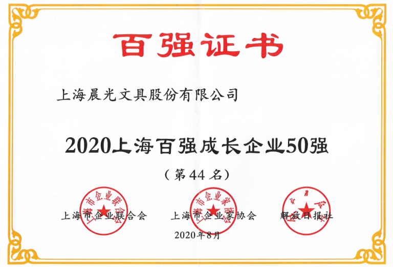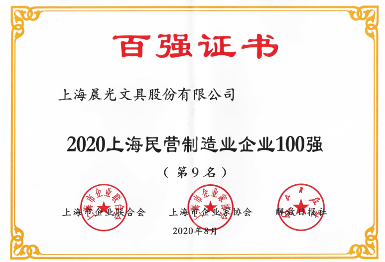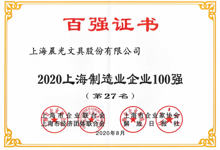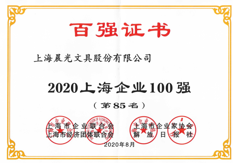 2020上海百?gòu)?qiáng)企業(yè)榜發(fā)布,晨光文具再登五項(xiàng)榜單!